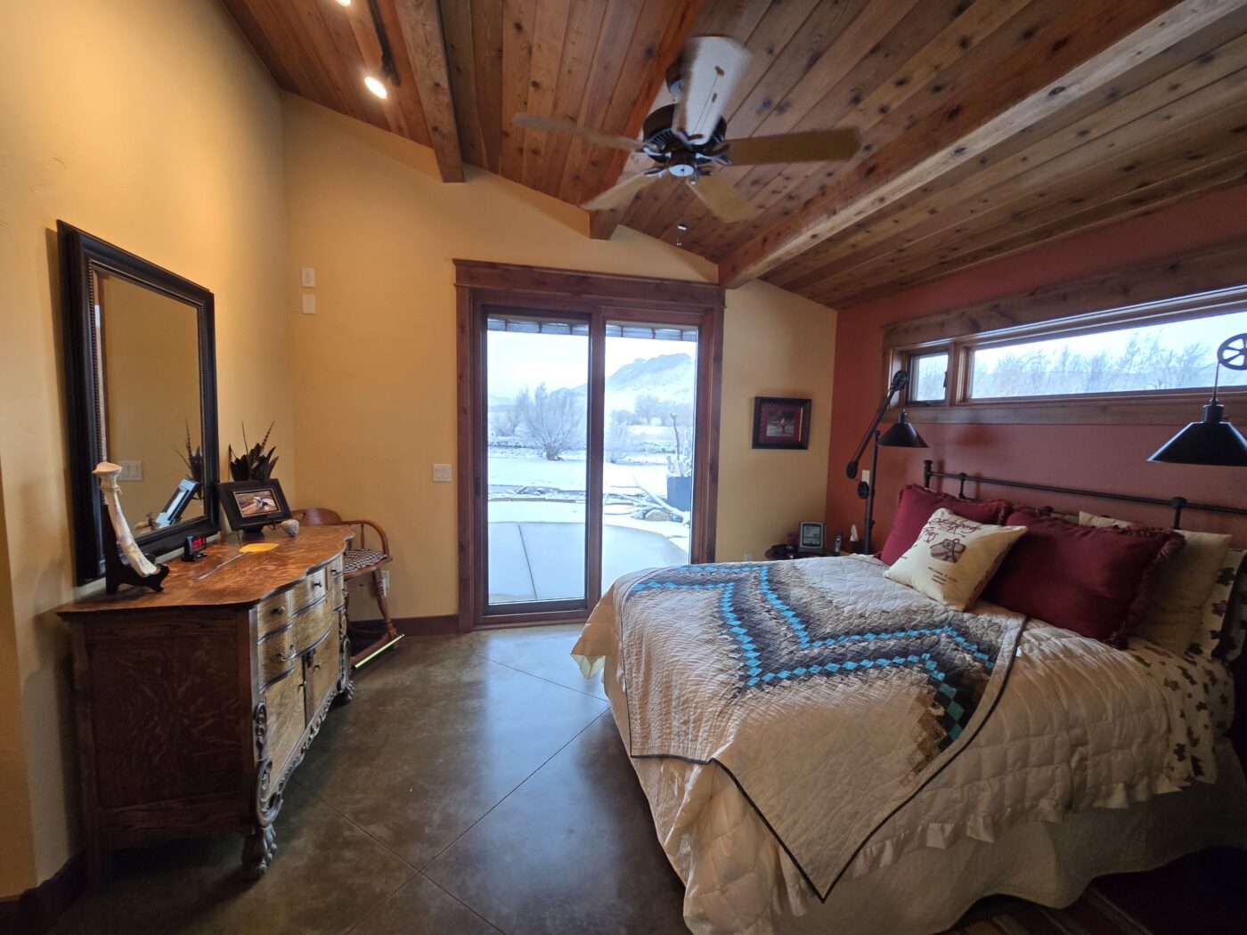 Open floor plan with post and beam, radiant heat concrete floors.