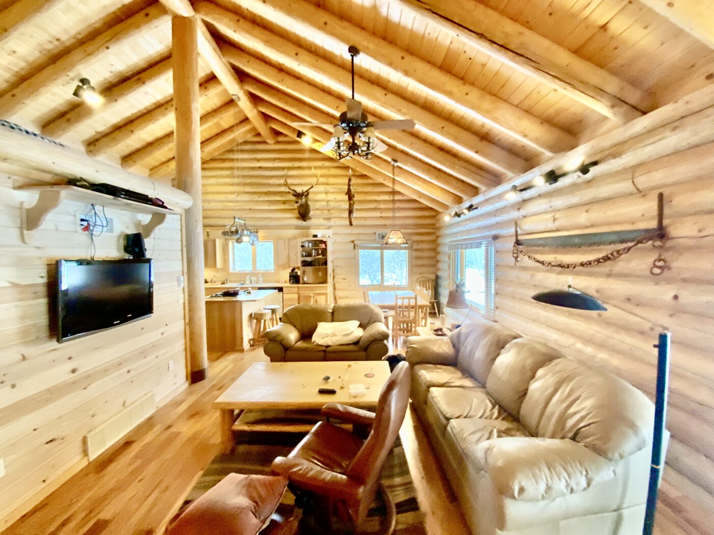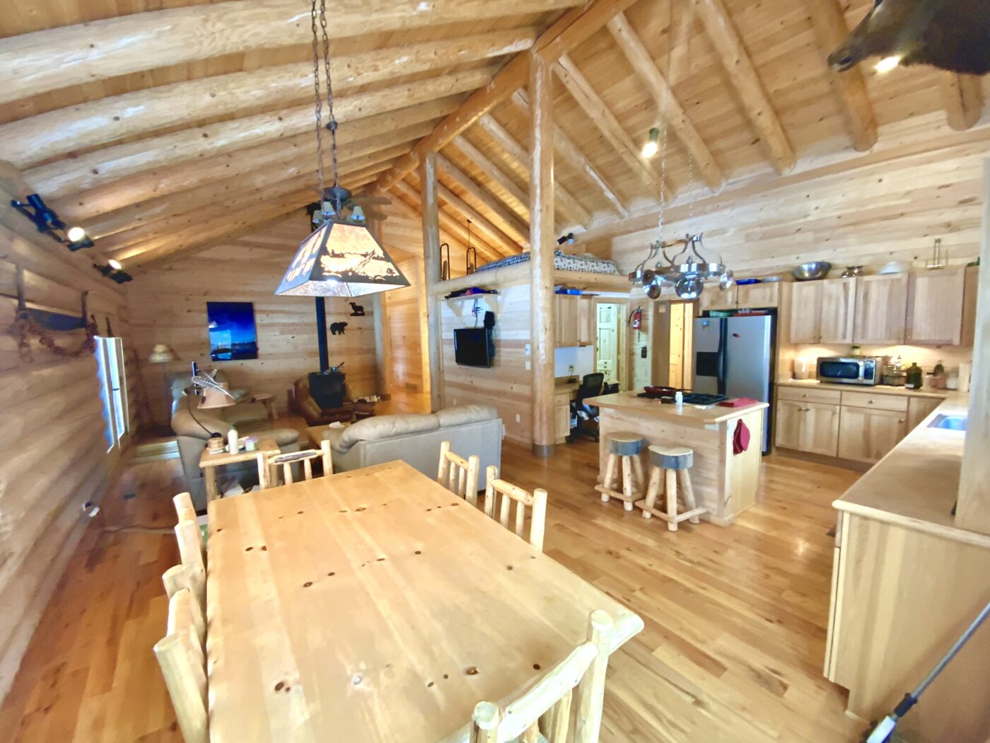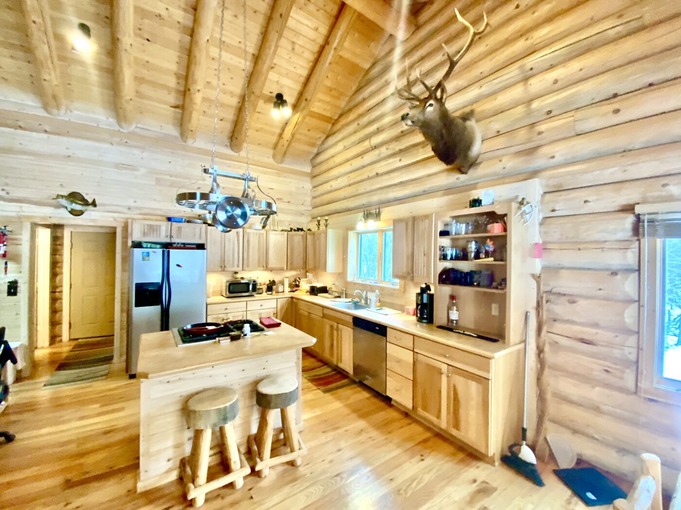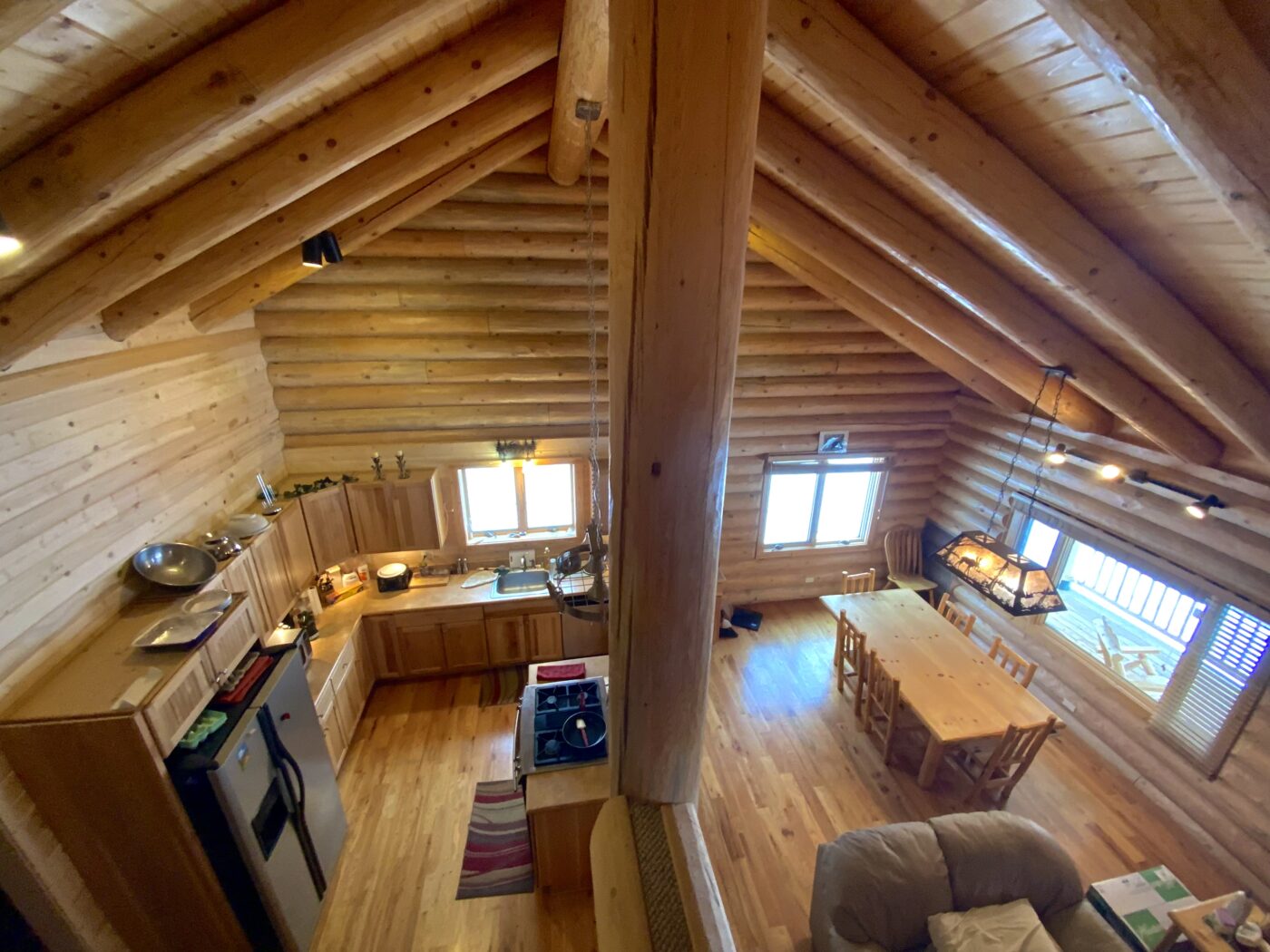 The home was built in 2008, with 10″ Swedish cope style pine logs, ( rubber seals in between each stacked log).