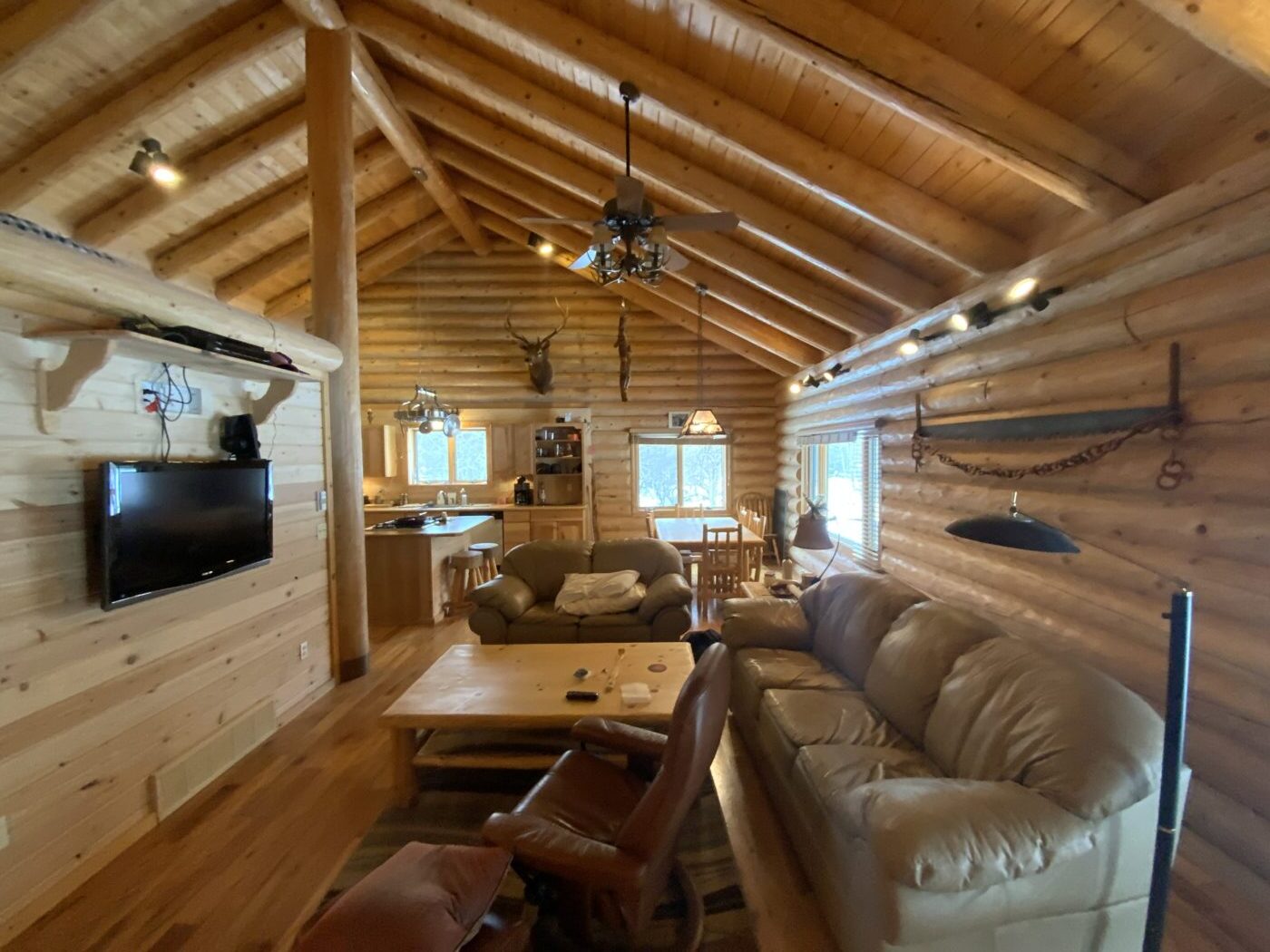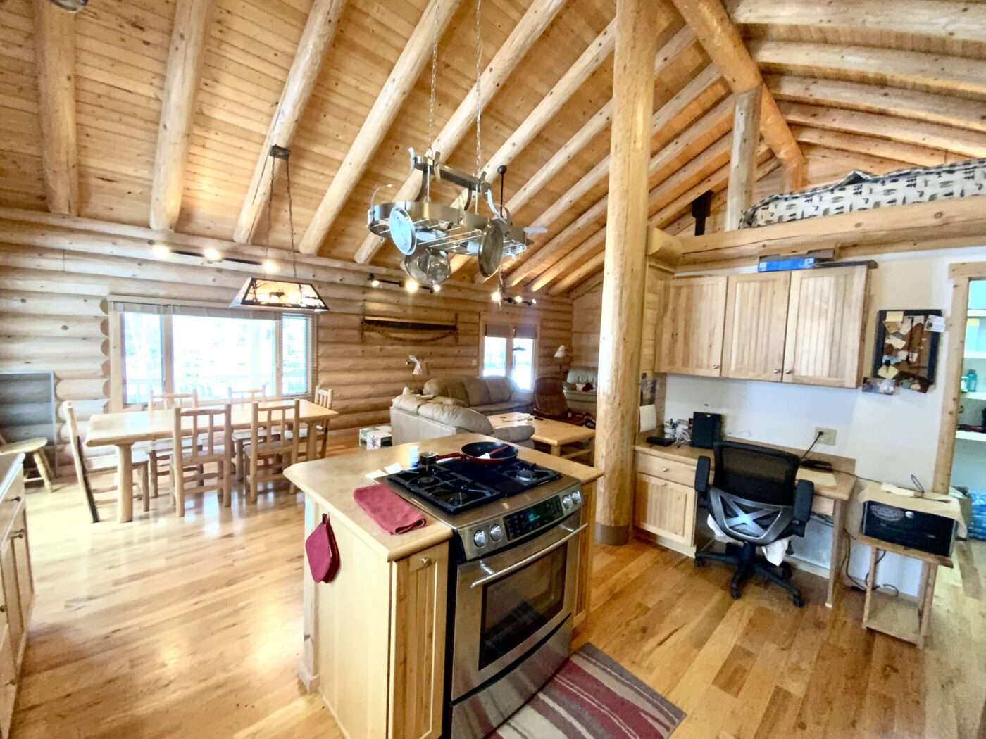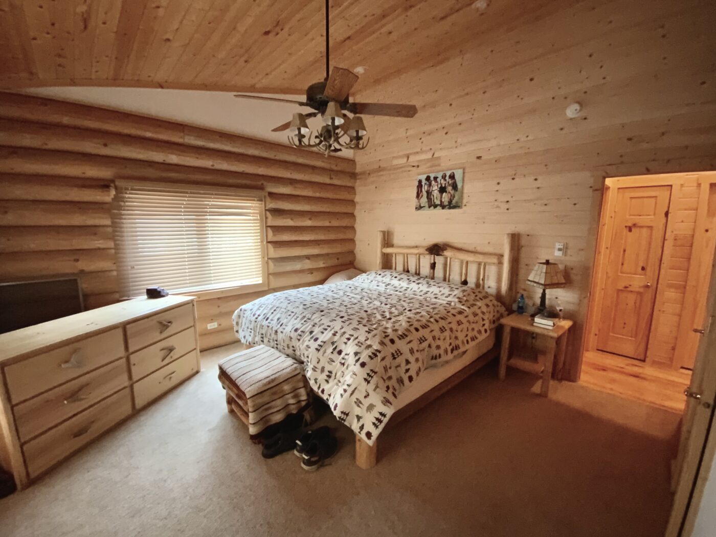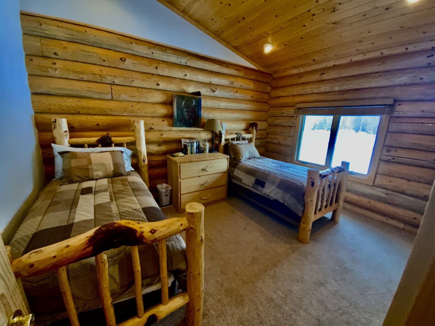 The home was built in 2008, with 10″ Swedish cope style pine logs, ( rubber seals in between each stacked log).