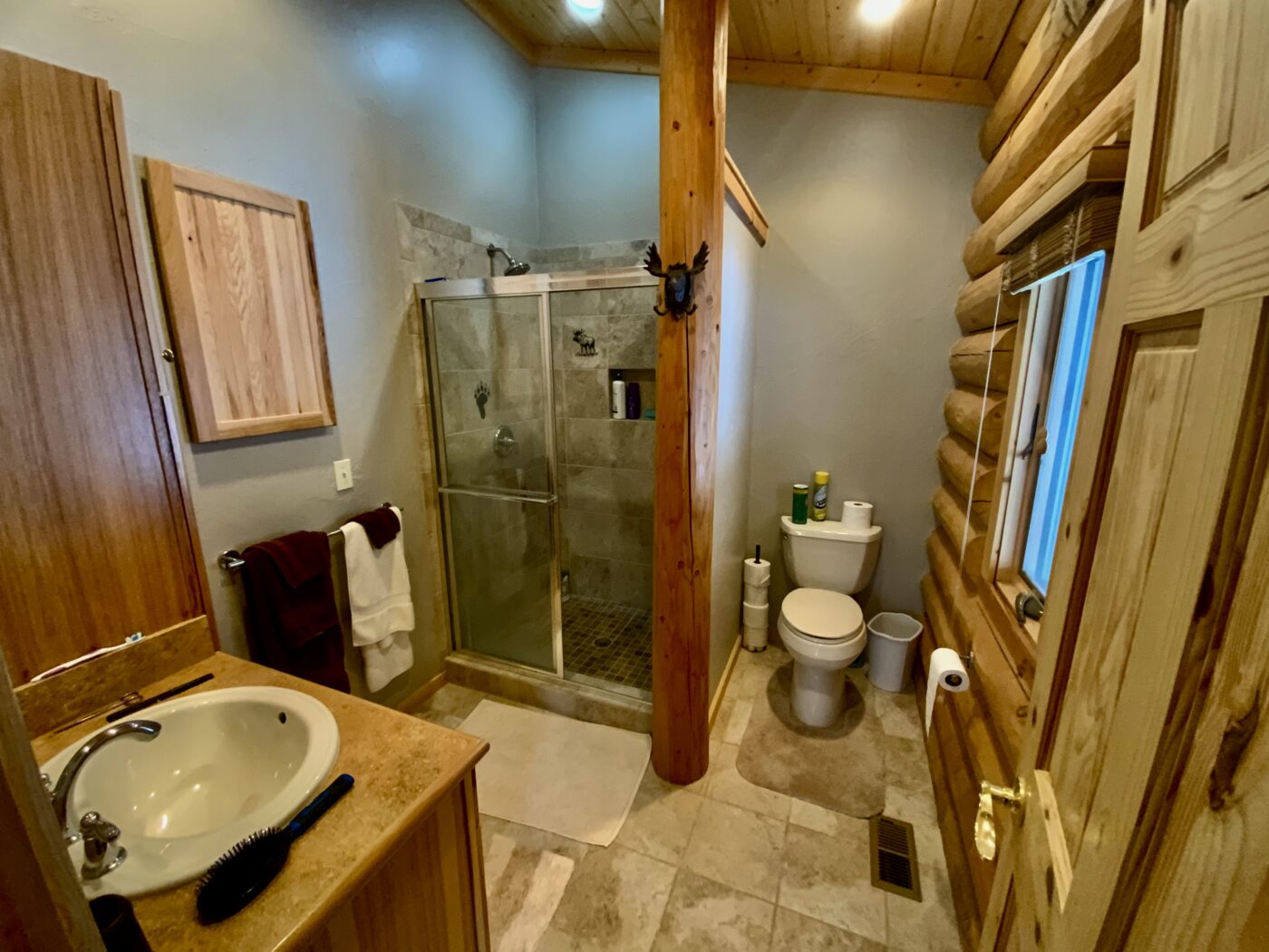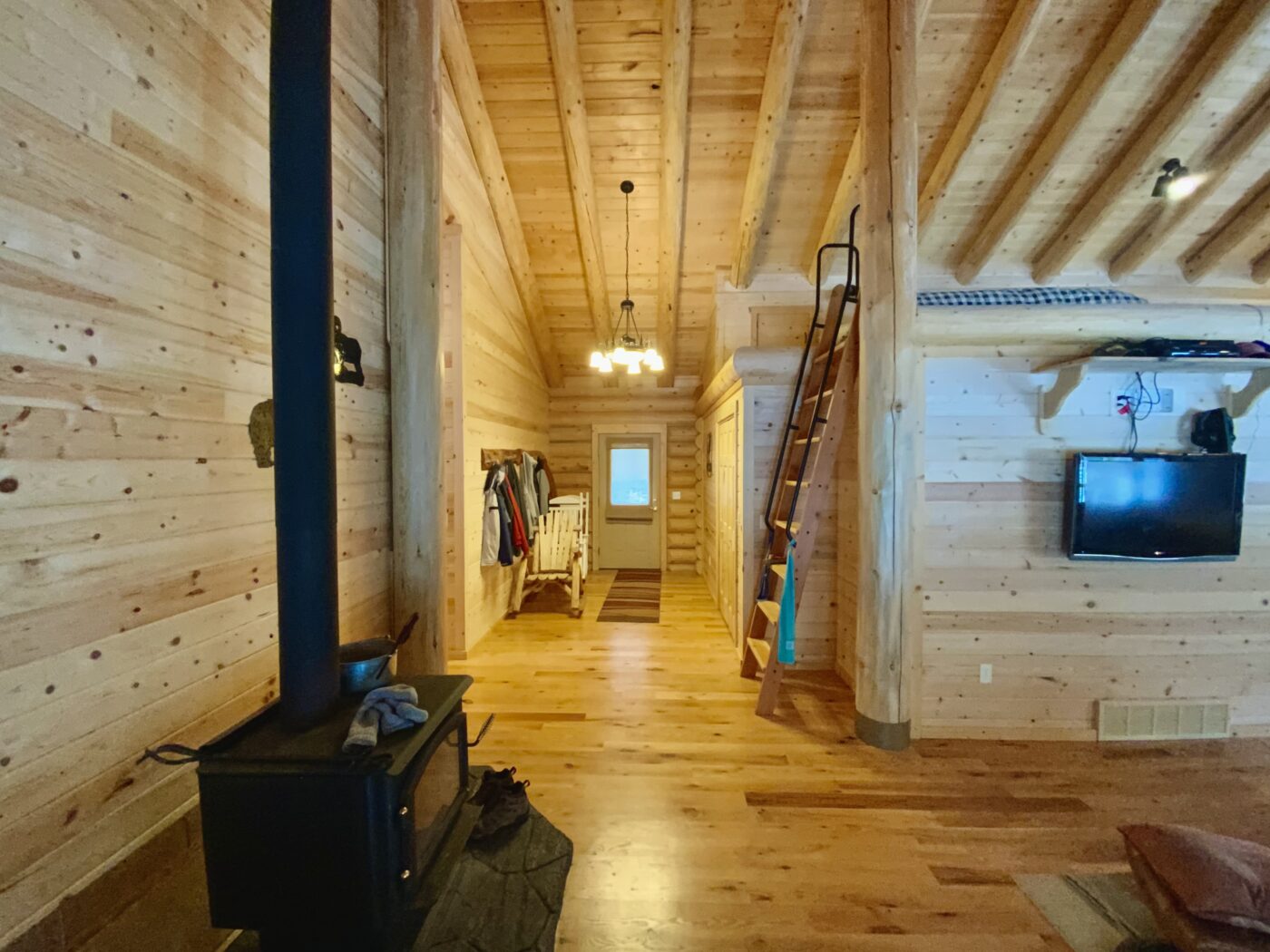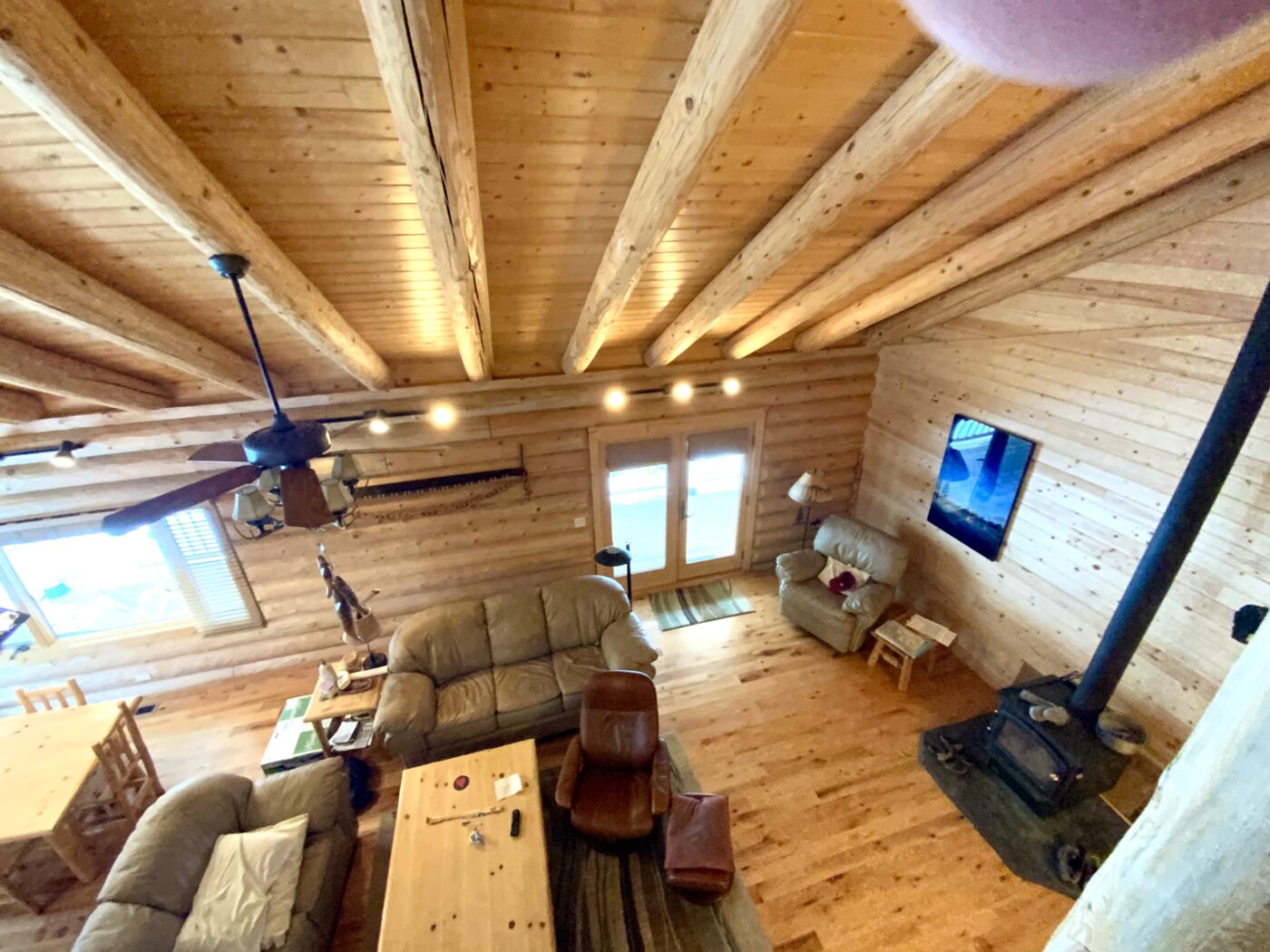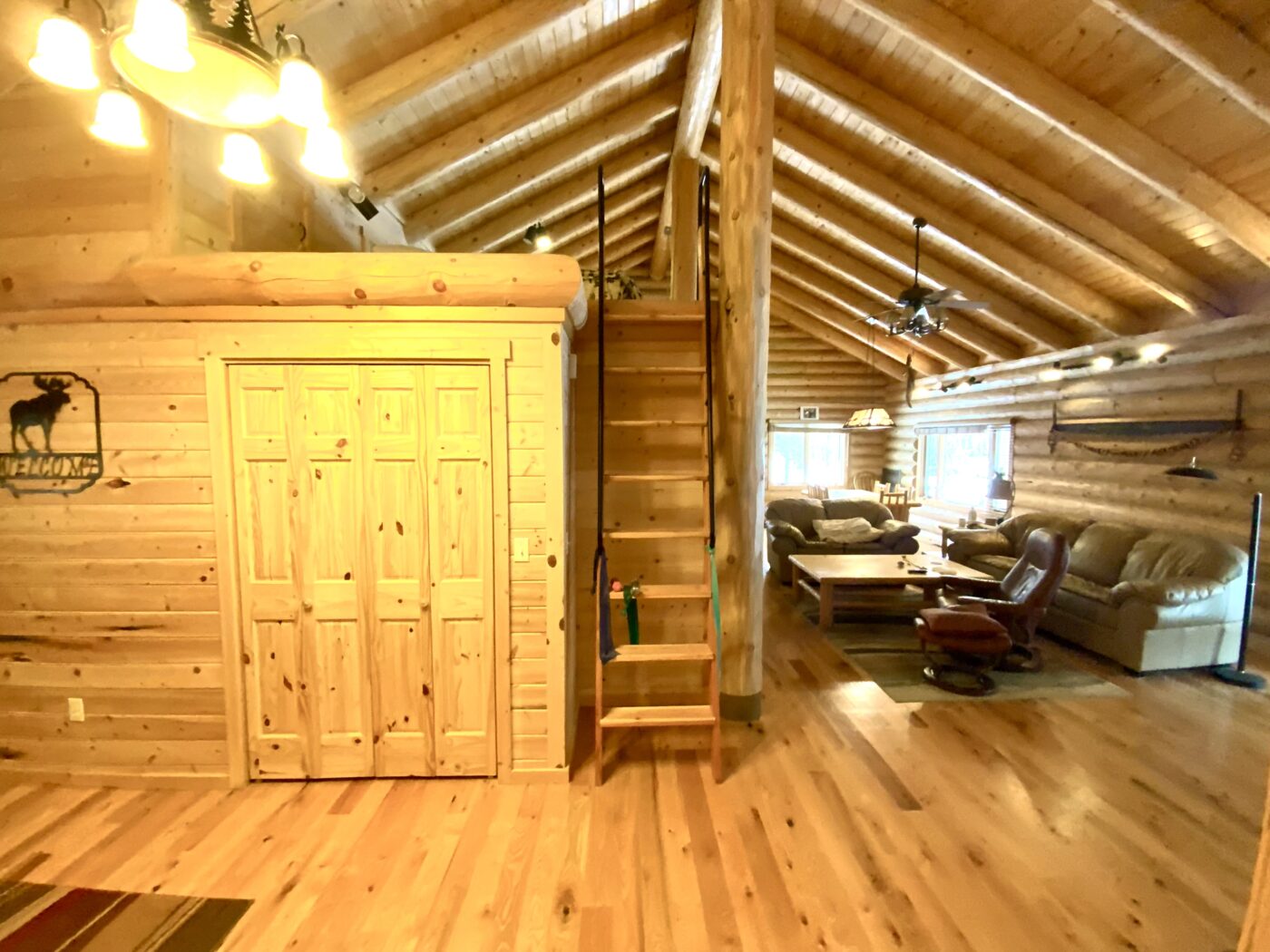 The home was built in 2008, with 10″ Swedish cope style pine logs, ( rubber seals in between each stacked log).