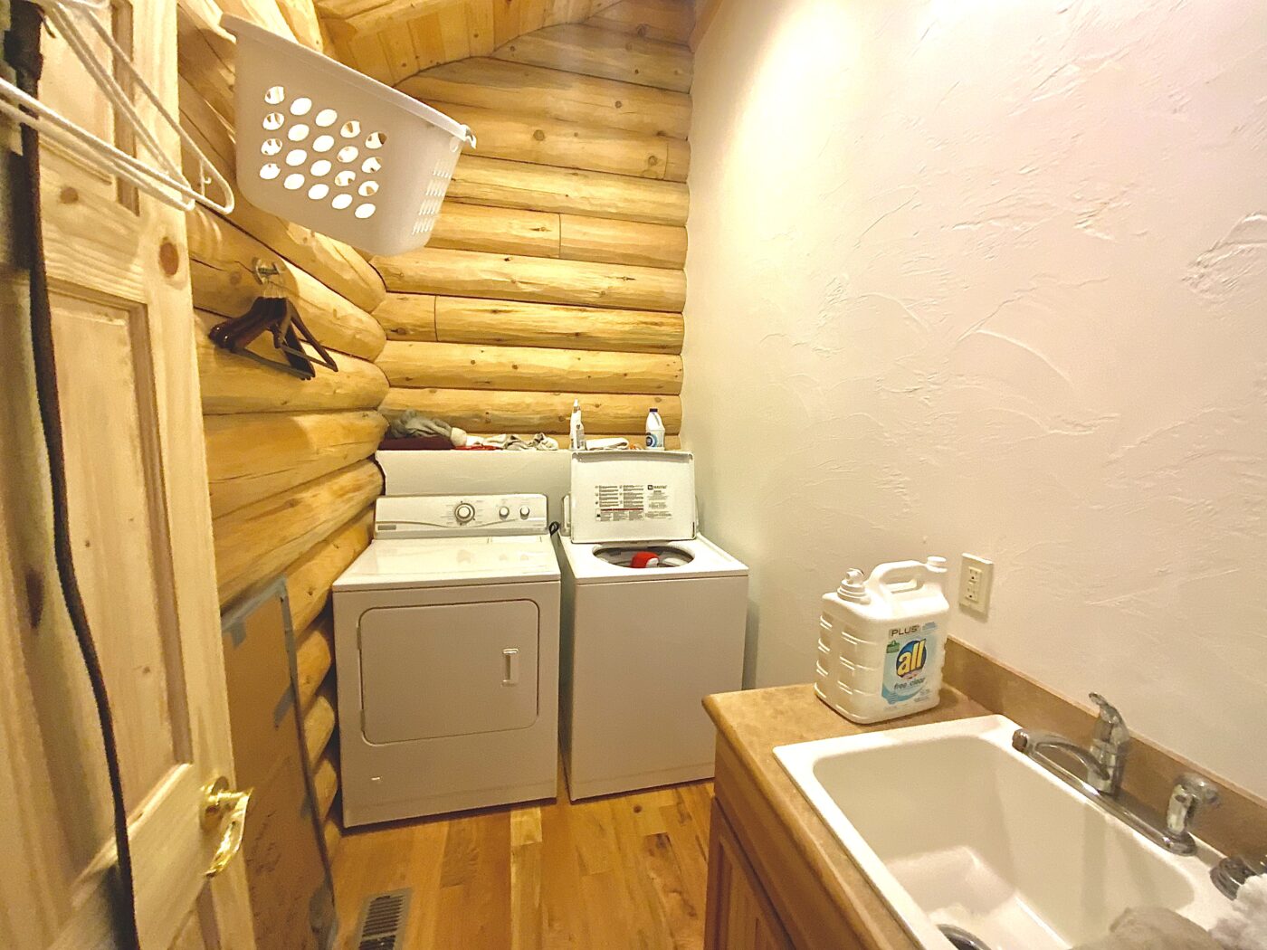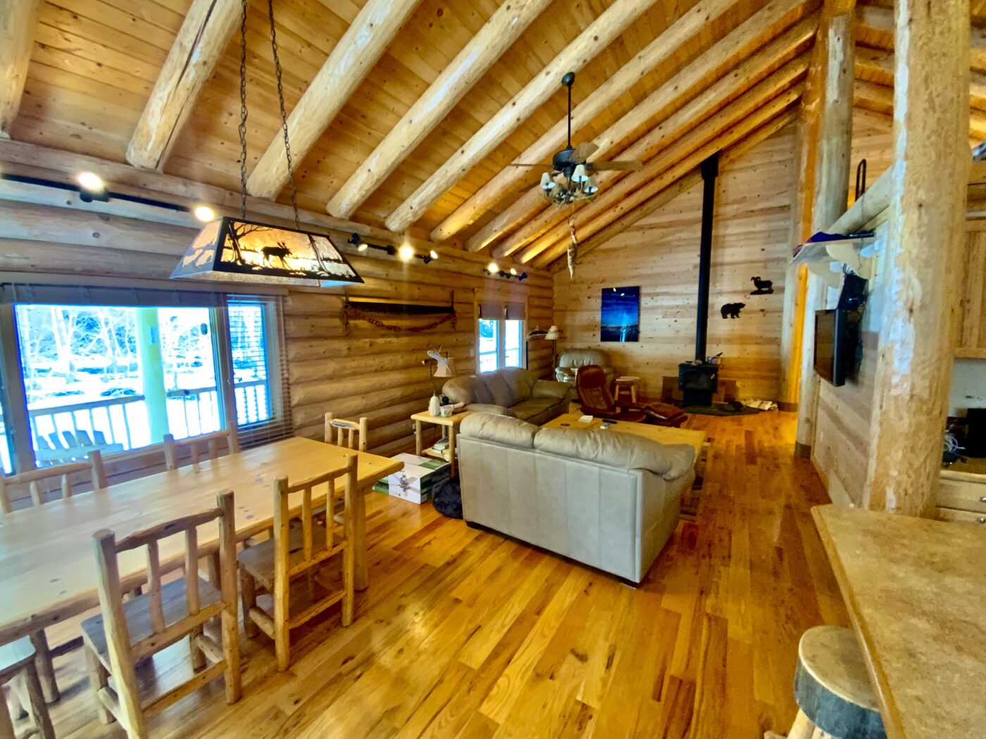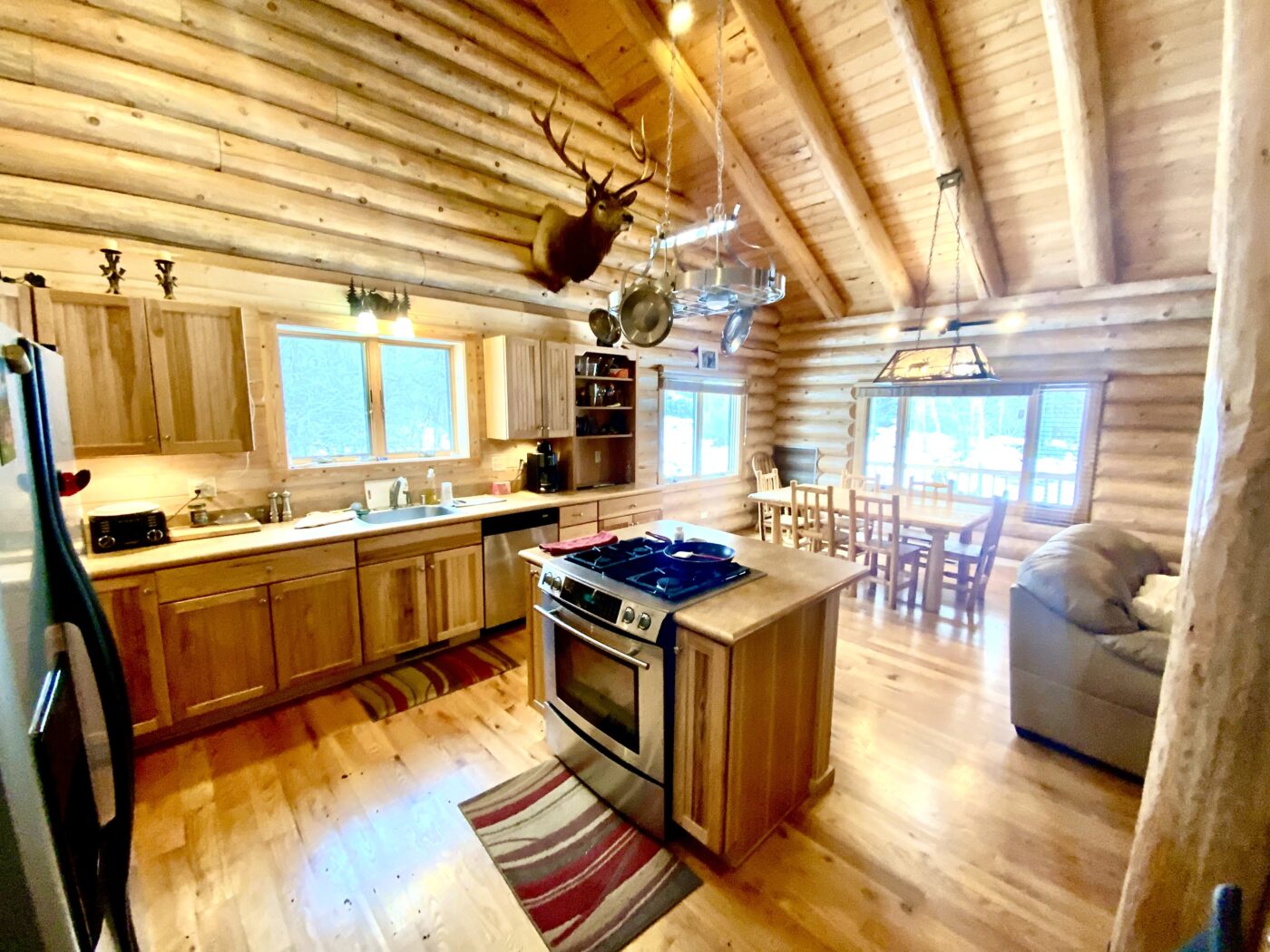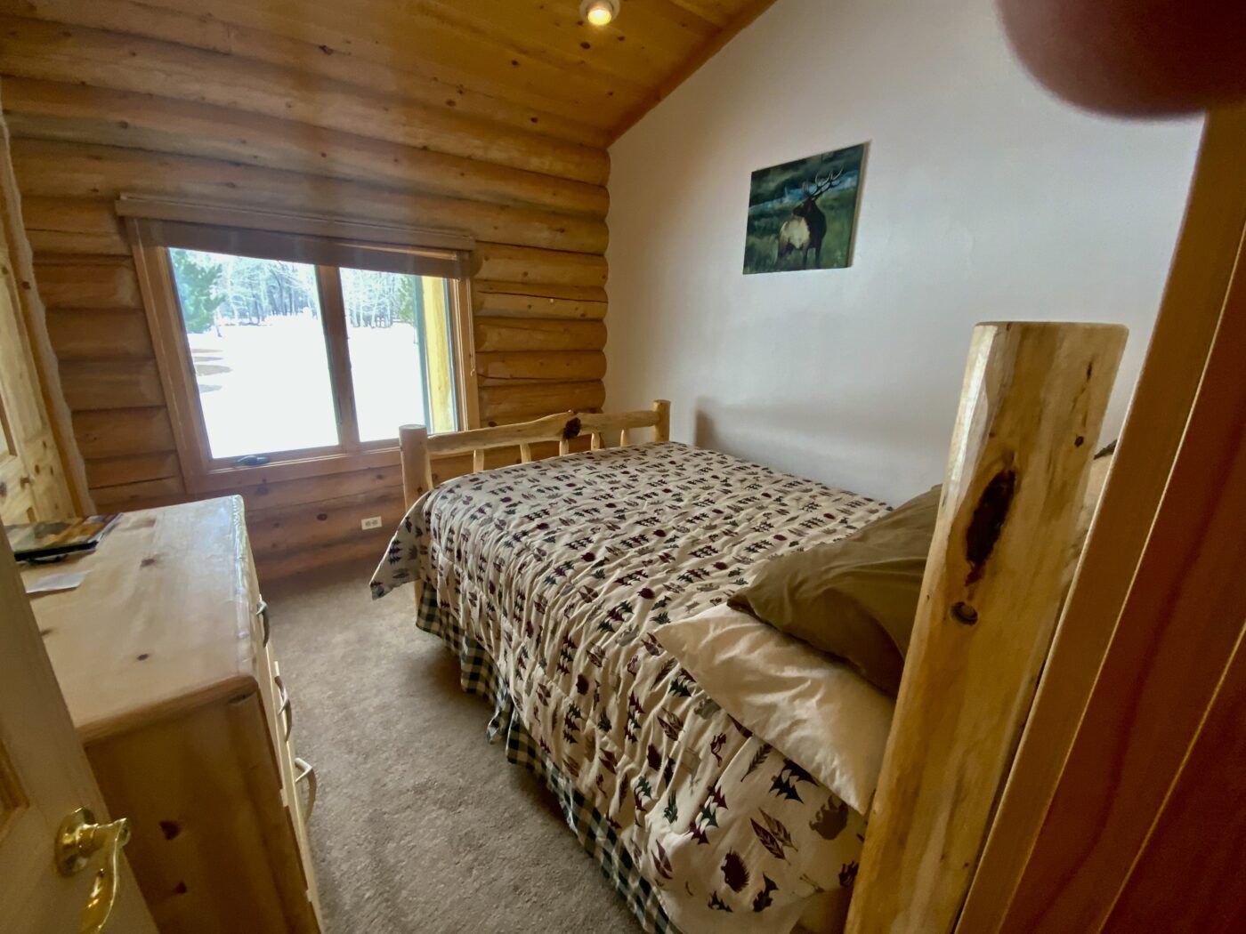The home was built in 2008, with 10″ Swedish cope style pine logs, ( rubber seals in between each stacked log).