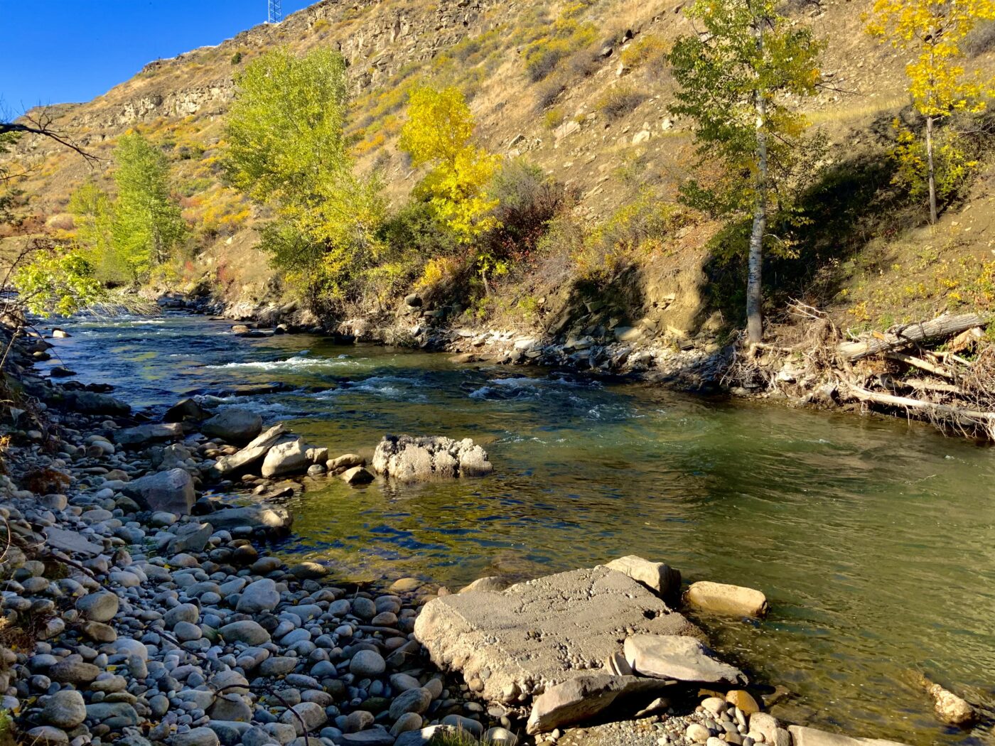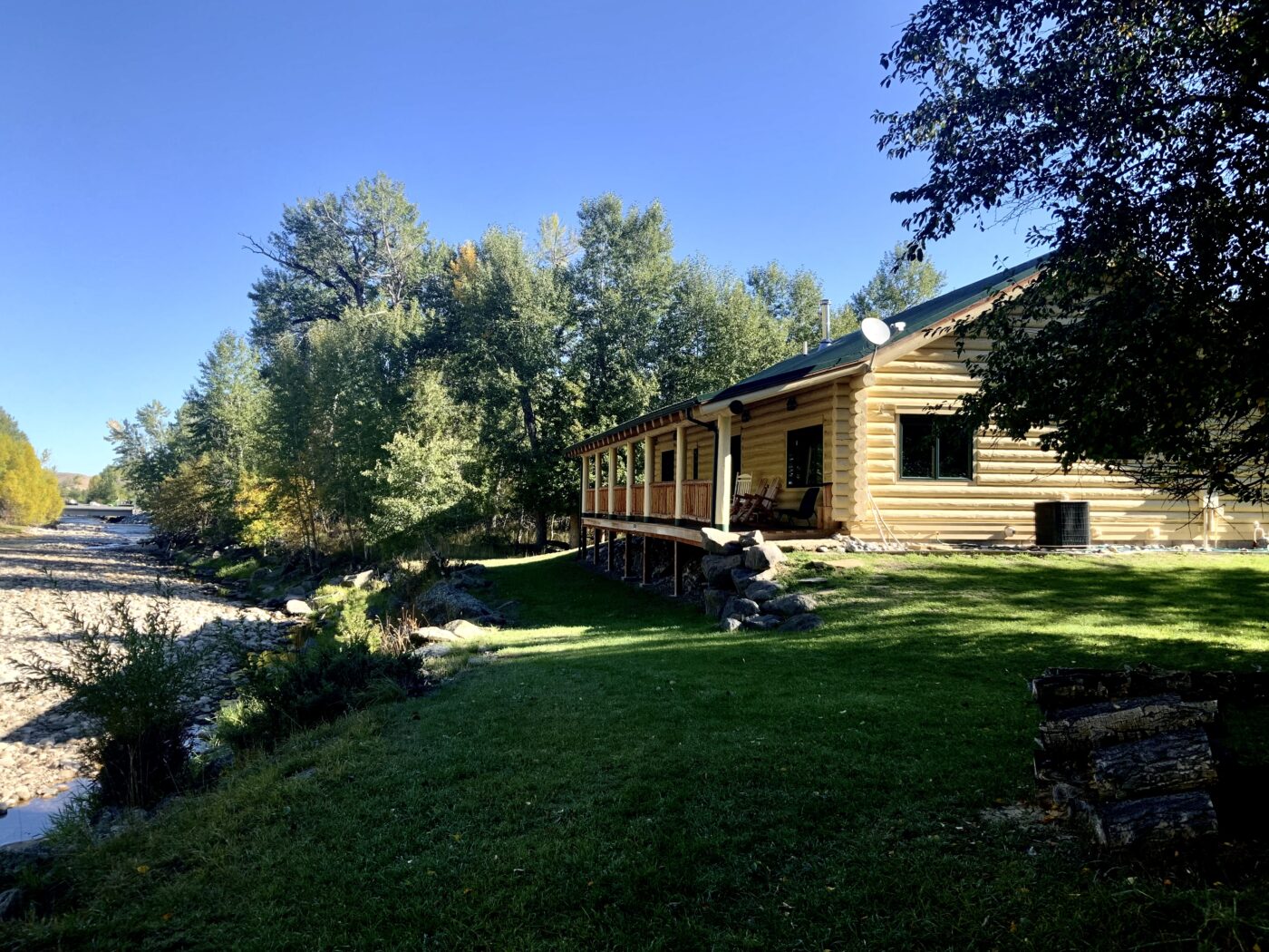 The Stillwater and the Rosebud are two of Montana’s premier trout streams and converge in the small mountain town of Absarokee, Montana. This area of Montana is renowned for its beautiful mountain vistas, rivers, and fly fishing. The Rosebud Retreat consists of 9.6 acres with a custom designed log home positioned at the river edge of the Rosebud. This property is surrounded by mature cottonwood trees and offers complete privacy, you would never know you were within walking distance of all the amenities of this full service town of Absarokee.