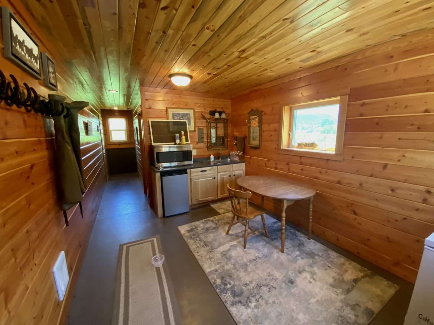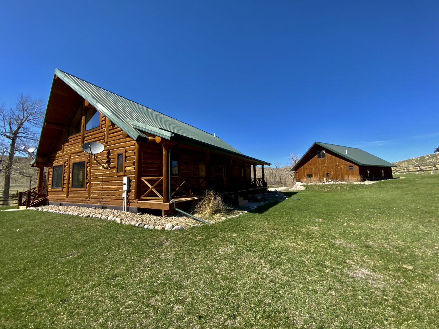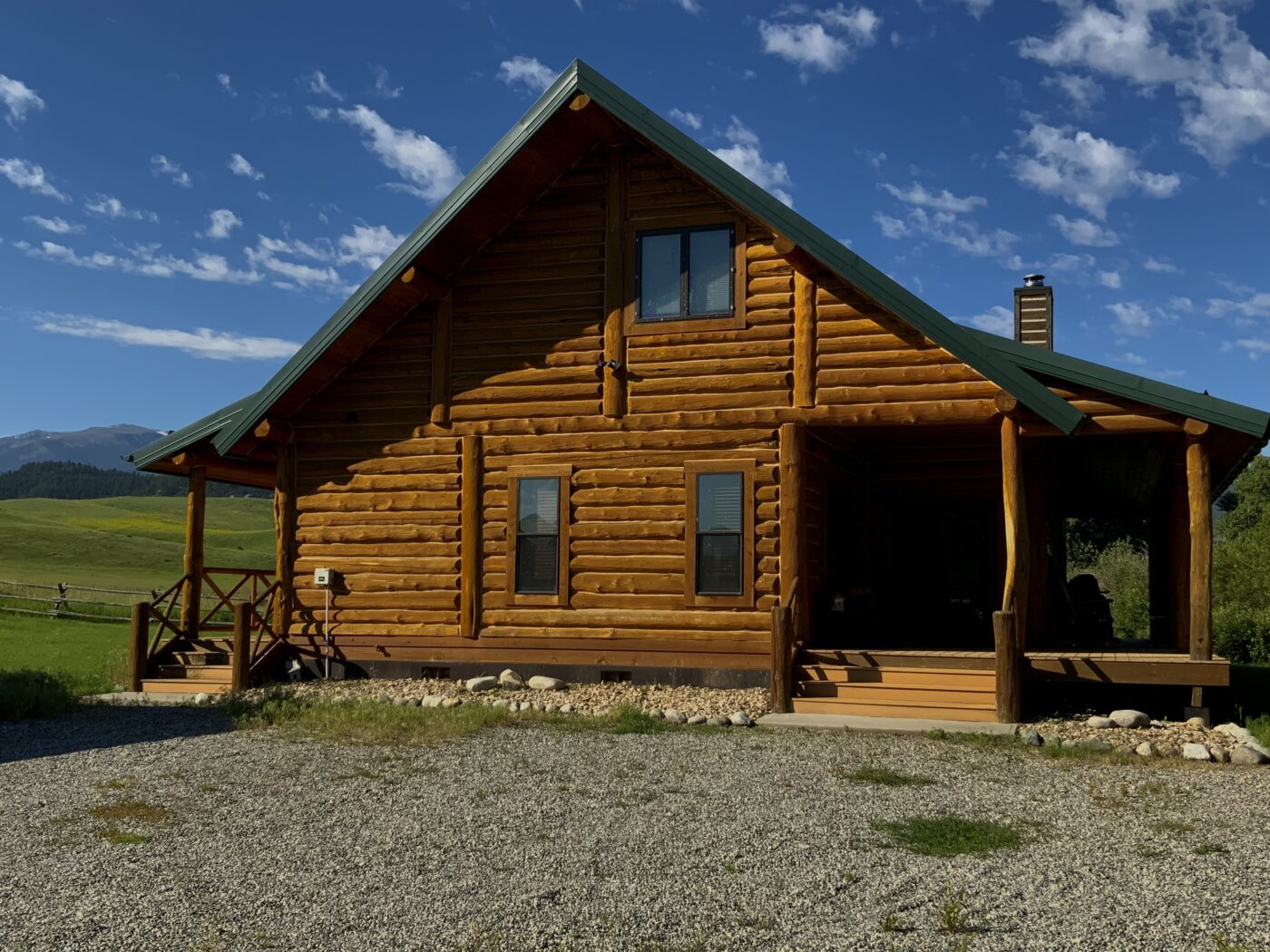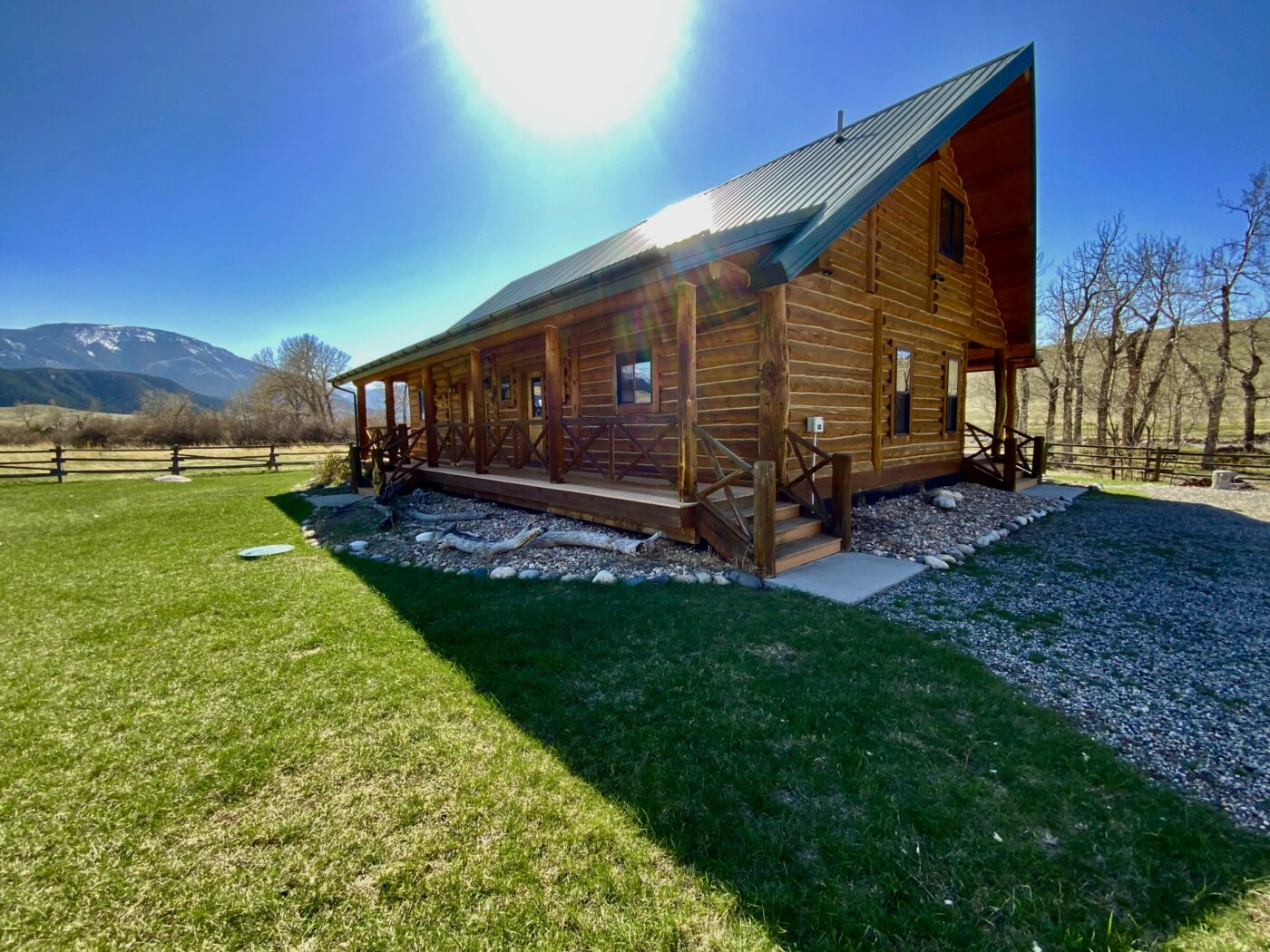 Located on one of Montana’s premier trout streams. The Fish Camp has always been one of my favorite places for wade fishing, it enjoys over 1.8 miles of private water. The custom log cabin has the warm feeling of a high-end retreat. A studio apartment is a combination of the two-bay garage. Also, there is an RV parking area alongside the garage.