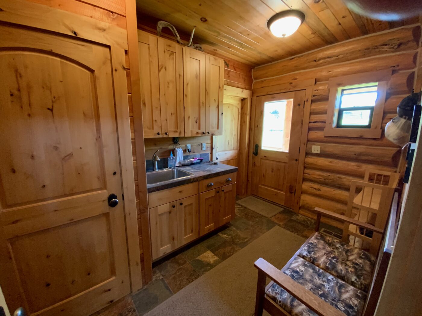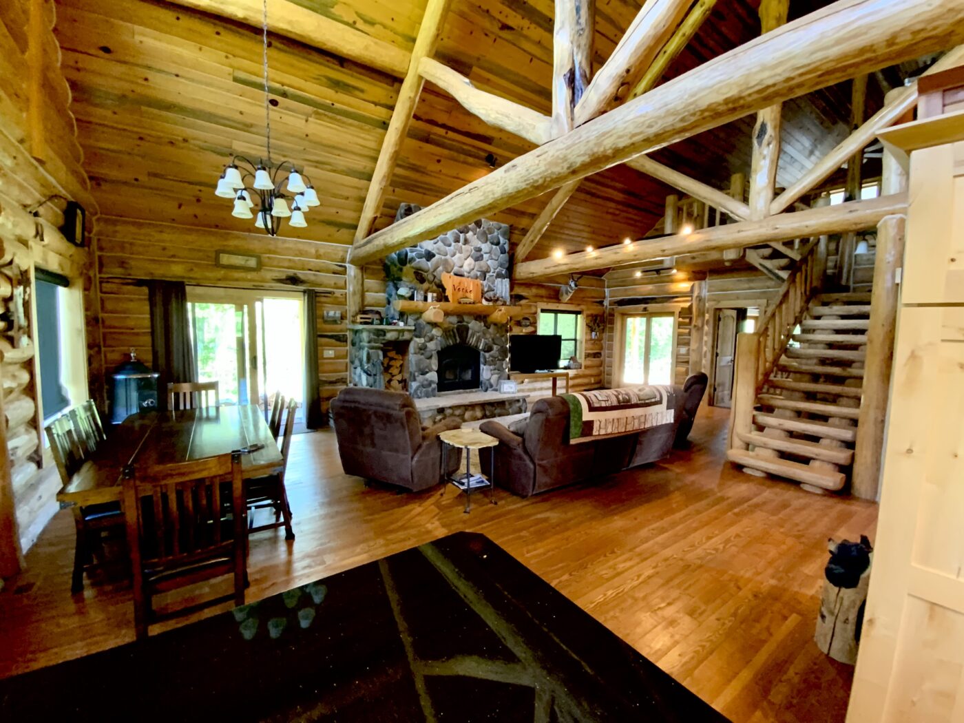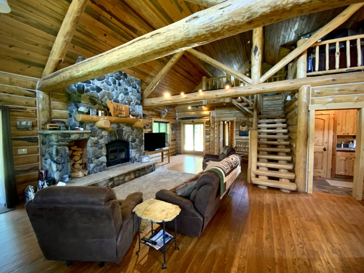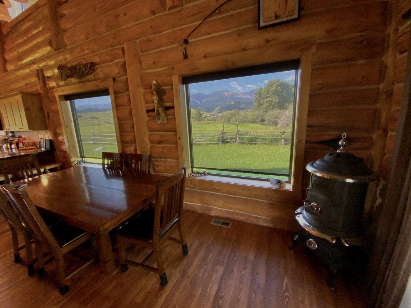 Located on one of Montana’s premier trout streams. The Fish Camp has always been one of my favorite places for wade fishing, it enjoys over 1.8 miles of private water. The custom log cabin has the warm feeling of a high-end retreat. A studio apartment is a combination of the two-bay garage. Also, there is an RV parking area alongside the garage.