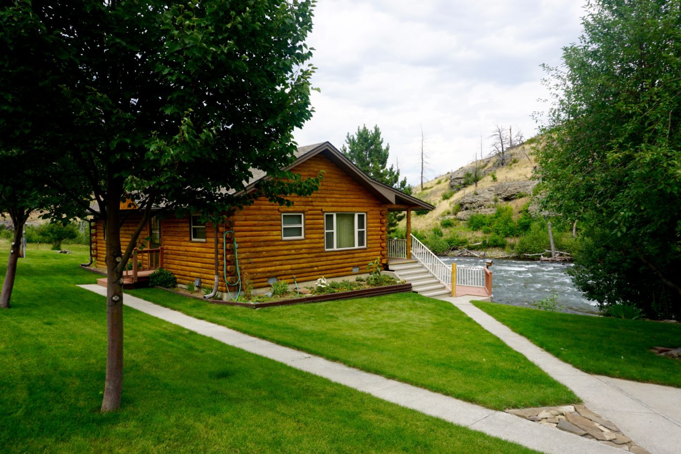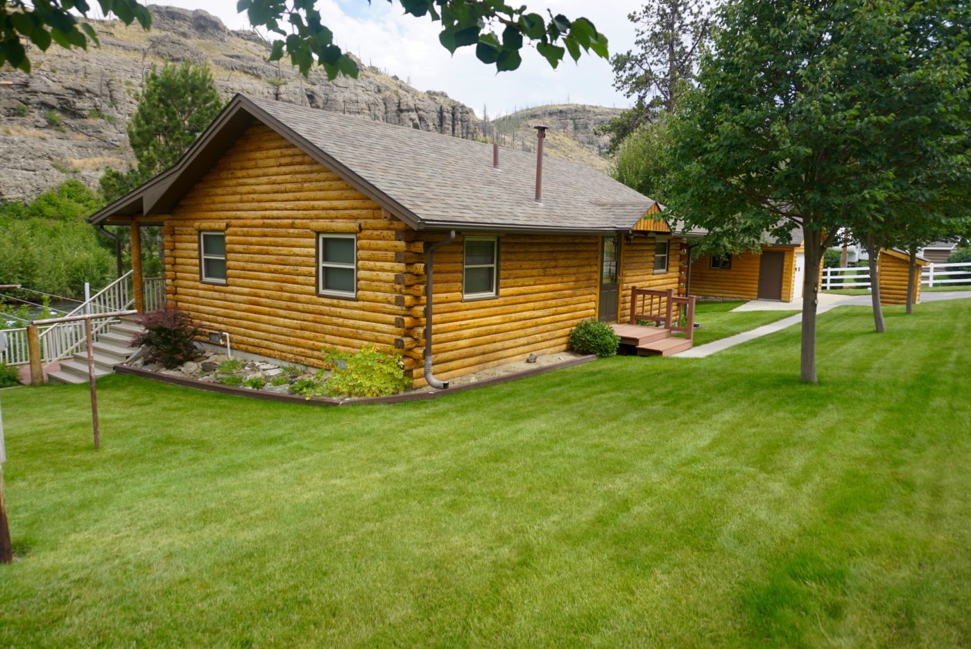 This attractive, cozy cabin is located on a beautiful secluded stretch of the Stillwater River near Absarokee, Montana. The neat, well-maintained log home sits right on the water’s edge and is surrounded by a landscaped yard with mature trees and established lawn. A large shady deck offers gorgeous views of the river running by and is the perfect place for quiet relaxation or outdoor entertainment. It’s also an ideal spot for birdwatching and wildlife viewing. The crystal-clear waters of the Stillwater River contain abundant populations of rainbow, brown and cutthroat trout, affording unrivalled fly-fishing opportunities right on the property. The acreage includes land on both sides of the river, providing additional access to the water and surrounding canyon area.