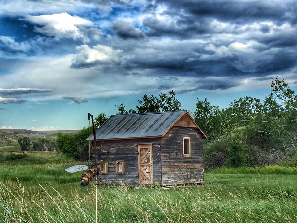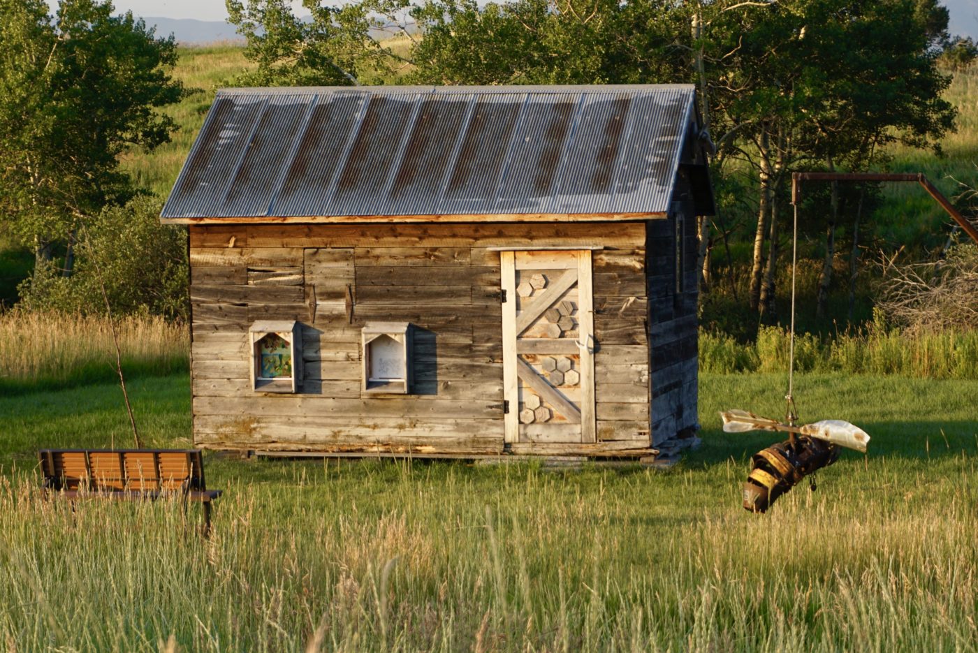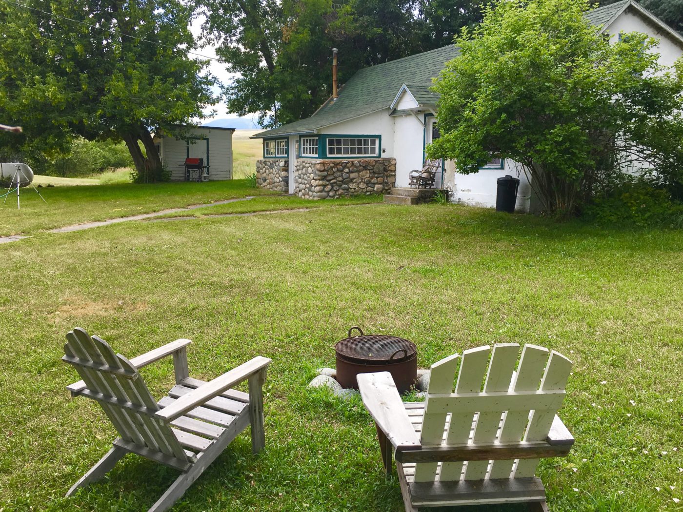 Situated in the center of these tranquil surroundings, the residential portion of the ranch features three separate dwellings: the ranch residence, comprising of an old mining house; a charming 1910 farmhouse known as Cobblestone House; and a more contemporary log home. Both Cobblestone House and Log House are currently used as guest rentals. Outbuildings include a huge barn with indoor stalls, 3 workshops, a large lean-to shelter, corrals, a portable chicken coop, and most intriguing of all, a wooden bee house (made from a repurposed farm shed) that shelters the hives of wild bees. The spacious farmyard is accentuated by neatly mown lawns, a  herb garden, and whimsical metal sculptures including a huge metal bee near the bee house and water and waterfowl features built around spring creeks.